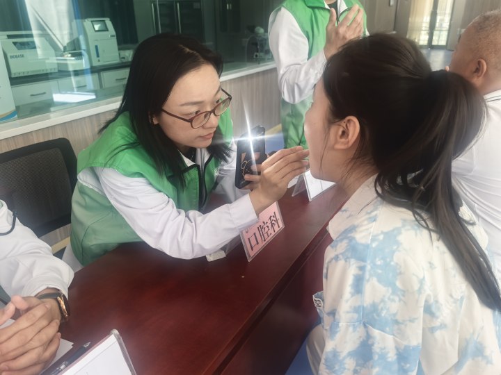 義診現(xiàn)場,專家團隊迅速投入工作。蔡巧棉為前來咨詢的職工進行細致的口腔檢查,詳細講解牙周疾病防治知識,強調(diào)“口腔健康是全身健康的重要保障”,并現(xiàn)場示范科學的刷牙方法。