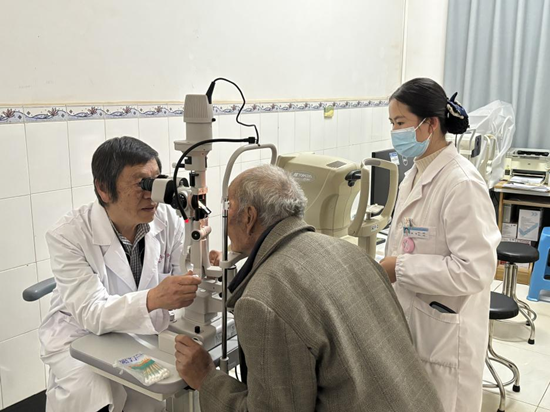 瀘西縣金馬鎮(zhèn)衛(wèi)生院,周偉教授正在給患者進(jìn)行眼睛檢查。白楊攝