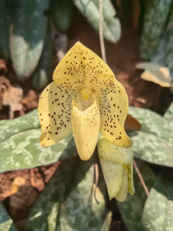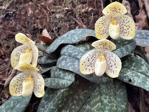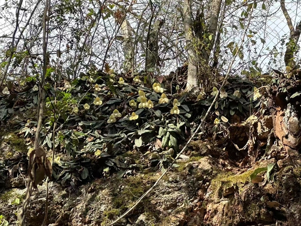 近期,在元江縣甘莊街道干壩社區(qū)的一片石灰?guī)r山坡上,國家一級保護(hù)野生植物文山兜蘭迎來花期,黃色的花瓣與同期生長的陳氏蘇鐵共同構(gòu)成獨(dú)特的生態(tài)景觀。