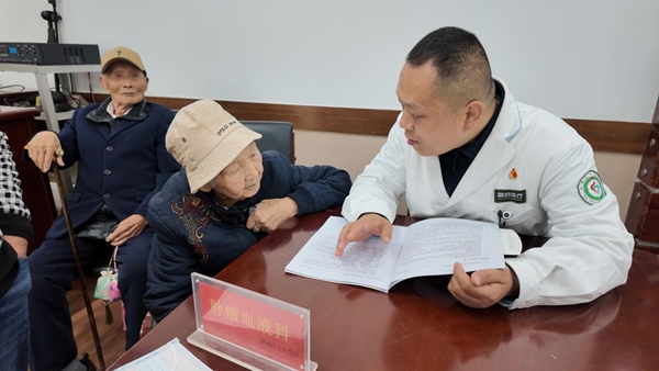 活動(dòng)現(xiàn)場(chǎng),醫(yī)院五官科、呼吸內(nèi)科、中醫(yī)疼痛康復(fù)科、腫瘤血液科等專(zhuān)家耐心詢(xún)問(wèn)老干部們的健康狀況,為老干部們提供測(cè)量血壓、血糖,心肺聽(tīng)診等基礎(chǔ)檢查,并根據(jù)老干部們的體檢報(bào)告,細(xì)致檢查身體情況,針對(duì)常見(jiàn)病、慢性病等進(jìn)行科學(xué)分析,提供用藥指導(dǎo)和健康建議。中醫(yī)疼痛康復(fù)科醫(yī)生現(xiàn)場(chǎng)演示耳穴壓豆、穴位按摩等中醫(yī)適宜技術(shù),向老干部們?cè)敿?xì)講解耳穴壓豆的原理及效果。一位101歲的老干部感慨道:“醫(yī)生們不僅耐心解答,還手把手教我們保健知識(shí),這份關(guān)懷比粽子更甜!”