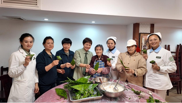 在包粽子互動(dòng)環(huán)節(jié),醫(yī)護(hù)人員與老干部們圍坐一堂,捋粽葉、填糯米、封口捆扎,共同追憶崢嶸歲月。九十二歲的老阿姨現(xiàn)場(chǎng)教授傳統(tǒng)粽子包法,年輕護(hù)士們虛心學(xué)習(xí),歡聲笑語(yǔ)中傳遞著跨越代際的溫情,讓這份“軍民同心粽”成為節(jié)日最溫暖的記憶。