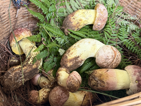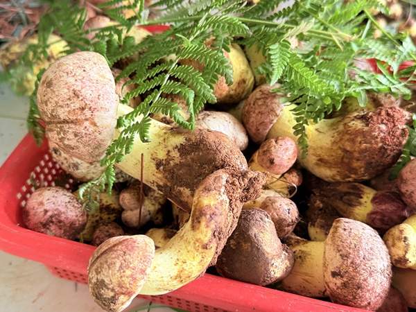 進(jìn)入雨季以來,易門縣龍泉街道水橋社區(qū)的徐發(fā)富每天都會(huì)到山上轉(zhuǎn)一轉(zhuǎn),期待泥土中深藏了一年的菌子能夠破土而出。6月1日一大早,徐發(fā)富剛到山上轉(zhuǎn)了不久,就發(fā)現(xiàn)了一窩牛肝菌,這窩牛肝菌有白牛肝和紅牛肝,拿回家一稱重約2.5公斤,這讓他驚喜萬(wàn)分。徐發(fā)富介紹,他每天都會(huì)上山采菌,同時(shí)向周邊農(nóng)戶收購(gòu),滿足市場(chǎng)需求。開始上市的牛肝菌味道鮮、香,售價(jià)在200多元。盡管當(dāng)前野生食用菌量少價(jià)高,但還是有不少市民購(gòu)買,爭(zhēng)先品嘗頭水菌的美味。