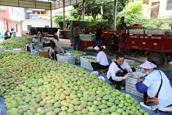 2020年底,老虎箐小組積極探索“黨建+合作社+基地+農(nóng)戶”發(fā)展模式,成立了勤農(nóng)水果專業(yè)合作社,統(tǒng)一產(chǎn)品商標(biāo)、統(tǒng)一質(zhì)量標(biāo)準(zhǔn)、統(tǒng)一產(chǎn)品形象,幫助果農(nóng)提升芒果品質(zhì)、對接市場、拓寬銷路,價格普遍高于去年。2023年以來,合作社充分發(fā)揮當(dāng)?shù)孛⒐e峰上市優(yōu)勢,攜手網(wǎng)絡(luò)電商平臺,采用“線上+線下”的銷售模式,打出了一張漂亮的“時間差”牌,贏得了銷售先機(jī),呈現(xiàn)出產(chǎn)銷兩旺的喜人景象。