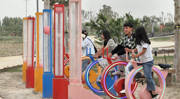 墨玉縣加汗巴格鄉(xiāng)中學學生熱依拉?巴圖爾興奮地說:“在今天這個假日里,我來到此地,欣賞到了許多美麗的風景。這里有各式各樣的玩具,構造設計得十分精致。我玩得非常開心?!睙嵋览南矏傊橐缬谘员?,她也成為了援疆林項目帶來福祉的見證者之一。