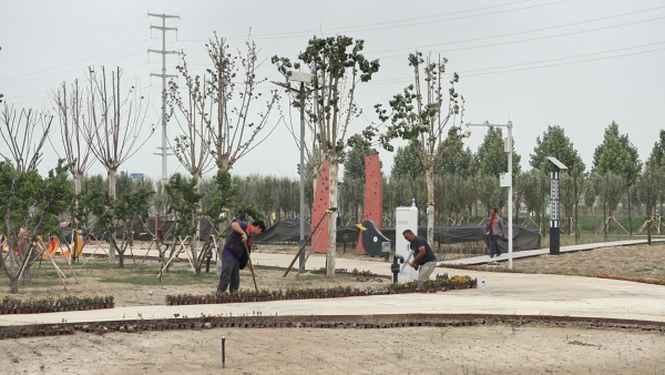 近日,走進正在熱火朝天建設中的援疆林項目現(xiàn)場。這里,四周被郁郁蔥蔥的樹木和五彩斑斕的花朵環(huán)繞,宛如一幅動人的畫卷,吸引著游客和當?shù)鼐用袂皝碛^賞游玩。