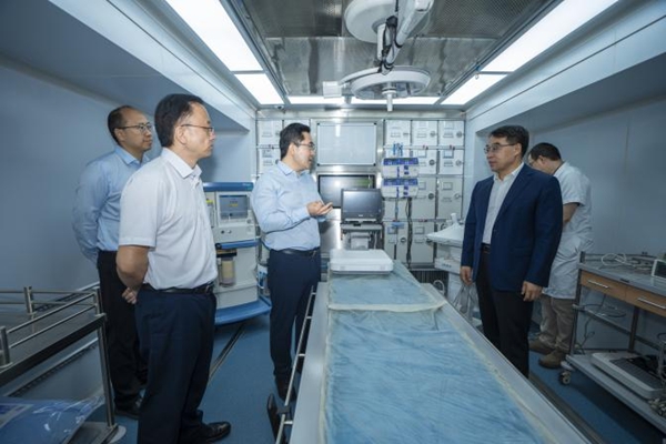 啟動(dòng)會(huì)結(jié)束后,參會(huì)人員實(shí)地參觀了極具創(chuàng)新意義的心電衣、無(wú)人機(jī),以及曾“走出國(guó)門”的移動(dòng)介入手術(shù)車等設(shè)備。