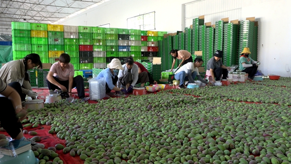 嚴(yán)格的品控標(biāo)準(zhǔn)貫穿了從果園到市場的每一個環(huán)節(jié)。在電商公司的分揀倉庫內(nèi),工人們按照大小、色澤和成熟度,嫻熟地將一個個芒果進(jìn)行分級,確保每一箱發(fā)出的芒果均達(dá)到標(biāo)準(zhǔn)。
