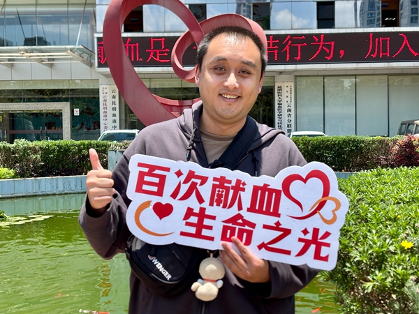今年的6月14日是第22個(gè)世界獻(xiàn)血者日,主題是“獻(xiàn)血傳遞希望,攜手挽救生命”,在這個(gè)特殊的月份,呂帥如常前往云南昆明血液中心,捐獻(xiàn)了兩個(gè)單位的血小板。在目睹自己鮮紅的血液緩緩從手臂流出,進(jìn)入血液成分分離機(jī)的過程中,呂帥并未感到有何異樣。這已是他第104次參與獻(xiàn)血。每個(gè)周末,他都會(huì)事先做好準(zhǔn)備,成為最早一批抵達(dá)云南昆明血液中心捐獻(xiàn)血小板的志愿者。這一堅(jiān)持便是14年,累計(jì)獻(xiàn)血量達(dá)到了36100毫升。