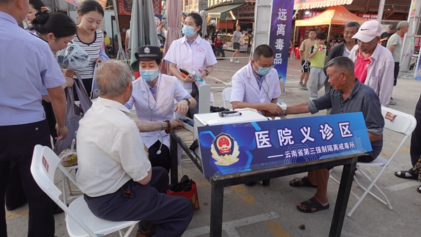 近日,云南省玉溪市紅塔區(qū)青花街夜市變身“禁毒普法大課堂”,云南省第三強制隔離戒毒所聯(lián)合多部門舉辦的“禁毒普法零距離·法潤萬家守平安”主題活動,讓市民揭開毒品偽裝面紗,讓防毒知識走進千家萬戶。
