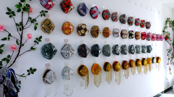 寬敞明亮的展廳內(nèi),各類文化特色產(chǎn)品琳瑯滿目。奴日曼古麗攝