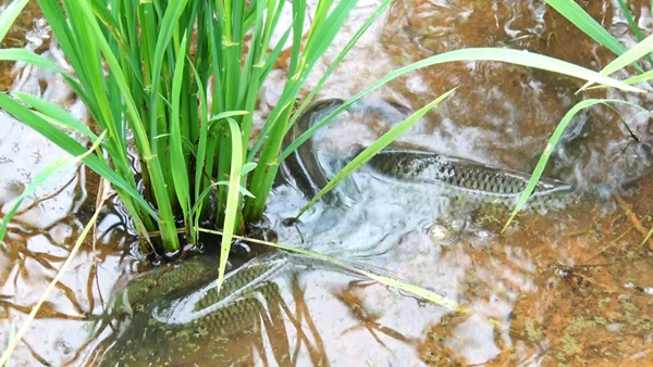 大莊鎮(zhèn)普巖村委會(huì)平掌子村村民楊慶云高興地說(shuō):“這些谷花魚(yú)兩個(gè)月以后就可以上市了,每畝稻田能增收1000元。今年我種了四五畝水稻,預(yù)計(jì)魚(yú)和水稻總計(jì)有10000元的收入?!?/p>