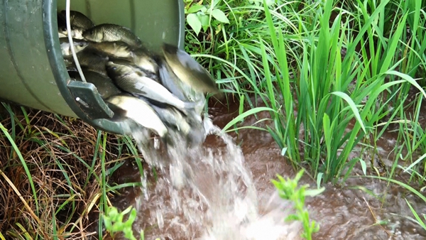 在雙柏縣大莊鎮(zhèn)普巖村委會(huì)平掌子村魚(yú)苗發(fā)放現(xiàn)場(chǎng),農(nóng)戶們肩扛扁擔(dān)、提著水桶,早早地就排起了長(zhǎng)隊(duì),臉上洋溢著期待的笑容,工作人員分工明確,核對(duì)名單、撈魚(yú)稱重,耐心地叮囑注意事項(xiàng),有條不紊地進(jìn)行谷花魚(yú)苗發(fā)放,農(nóng)戶們小心翼翼地將一尾尾活蹦亂跳的魚(yú)苗放入精心整修的稻田中,看著跳躍翻騰的魚(yú)苗,大家的喜悅之情溢于言表。
