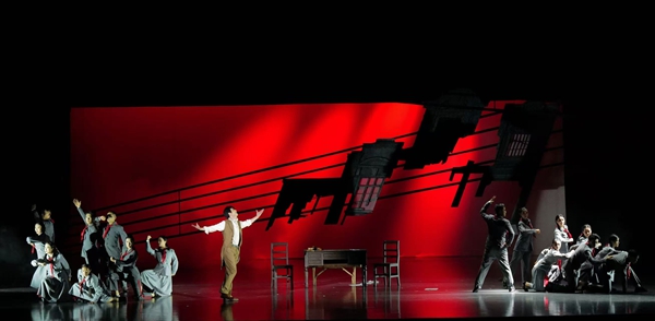 聶耳的音樂從《大路歌》到《義勇軍進(jìn)行曲》,都具有進(jìn)步性和人民性,尤其是《義勇軍進(jìn)行曲》,最終成為中華人民共和國國歌,成為中華民族具有精神圖騰意義的一個文化符號。劇目就是在這樣的歷史真實的基礎(chǔ)上,遵照藝術(shù)規(guī)律,合理構(gòu)思,著重刻畫了聶耳的心路歷程。特別是在音樂創(chuàng)作上,花燈戲《聶耳》以玉溪花燈“五大調(diào)”為基礎(chǔ),首次與西方交響樂配器技法相結(jié)合。兩者的有機(jī)融合,更貼合時代背景,有效拓展了音樂的表現(xiàn)力。讓聶耳革命情懷在“民族性+世界性”的音樂對話中煥發(fā)新聲。