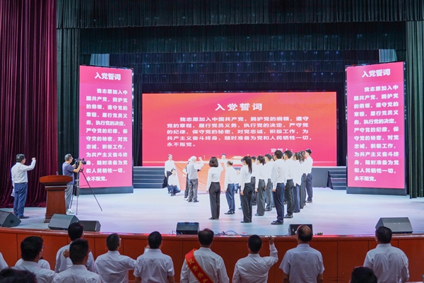 “光榮在黨50年”紀(jì)念章獲得者朱作成帶領(lǐng)新黨員入黨宣誓、老黨員重溫入黨誓詞,鏗鏘有力的誓言,表達(dá)了黨員們對(duì)黨的忠誠和為共產(chǎn)主義事業(yè)奮斗終身的堅(jiān)定決心。