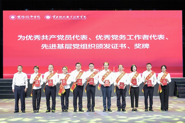 學(xué)院領(lǐng)導(dǎo)分別為優(yōu)秀共產(chǎn)黨員、優(yōu)秀黨務(wù)工作者、先進(jìn)基層黨組織頒發(fā)榮譽(yù)證書和獎(jiǎng)牌。