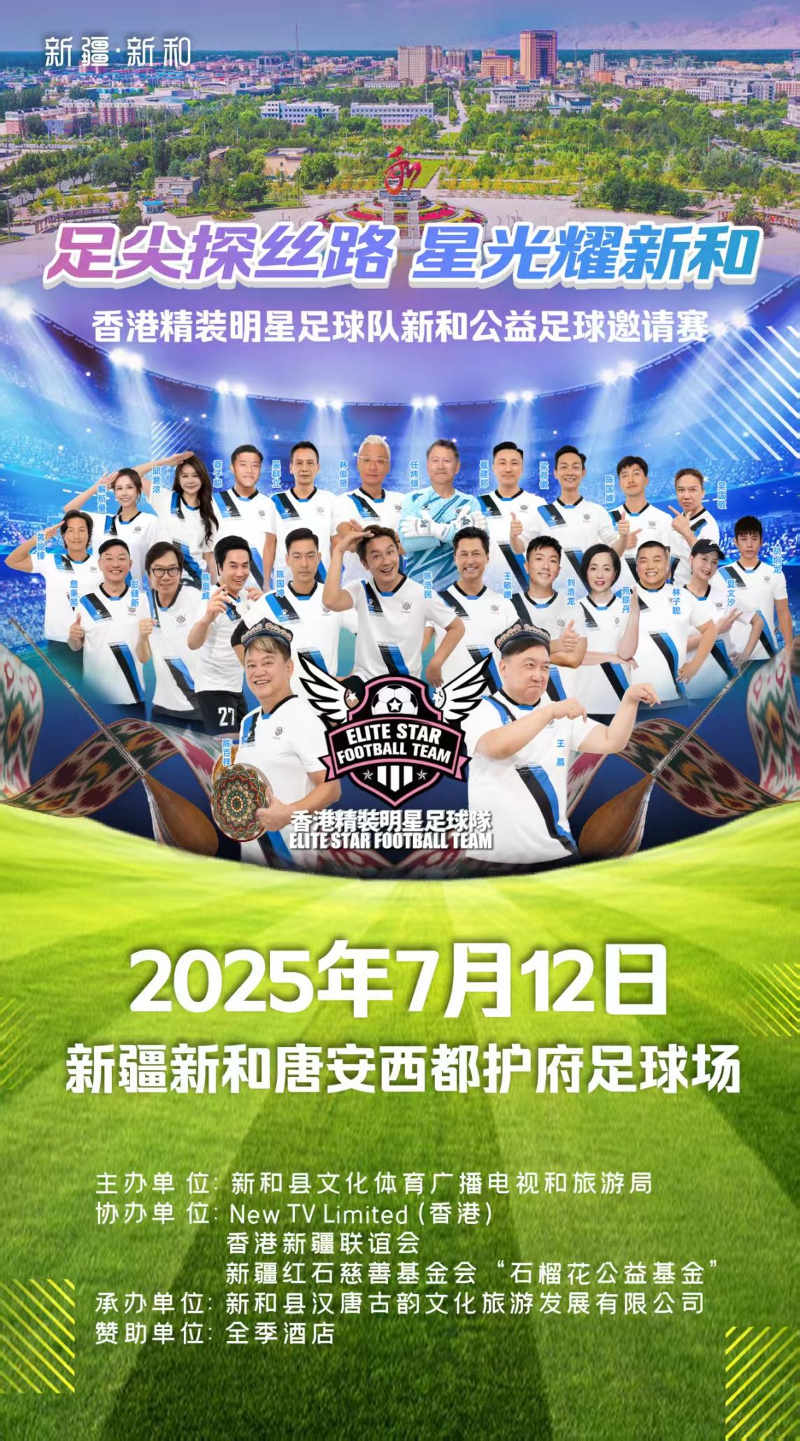 此次足球邀請賽由新和縣文化體育廣播電視和旅游局主辦,新和縣漢唐古韻文化旅游發(fā)展有限公司承辦,NewTV Limited(香港)、香港新疆聯(lián)誼會、新疆紅石慈善基金會?石榴花公益基金協(xié)辦。屆時,著名演員陳百祥、導(dǎo)演王晶將領(lǐng)銜陳浩民、陳國坤等二十余位香港藝體名人傾情參與。這不僅是兩地同胞手足相親、守望相助,心手相連、團結(jié)奮進時代精神的生動體現(xiàn),更是香港與新疆兩地深化交流交往交融、鑄牢中華民族共同體意識,同心共筑中國夢的鮮活注腳。