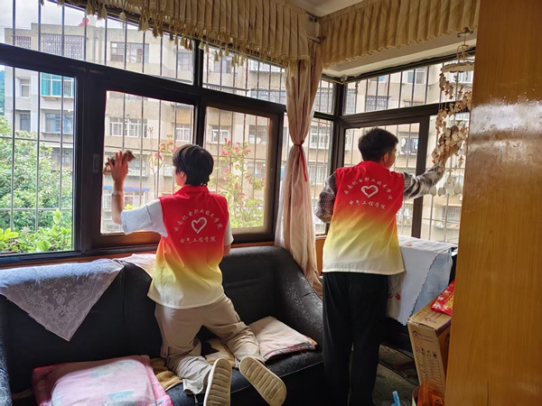 以蘭龍?zhí)渡鐓^(qū)與昆機(jī)社區(qū)為代表,茨壩街道構(gòu)建起“需求摸排 -服務(wù)供給 -情感慰藉”的閉環(huán)關(guān)愛(ài)機(jī)制。蘭龍?zhí)渡鐓^(qū)聯(lián)合云南機(jī)電職業(yè)學(xué)院民航學(xué)院志愿者,組建“微光行動(dòng)”服務(wù)隊(duì),為德惠小區(qū)獨(dú)居老人、殘疾家庭提供90分鐘“沉浸式”上門服務(wù)。志愿者以“責(zé)任心+親和力”雙輪驅(qū)動(dòng),不僅完成廚房、臥室等全區(qū)域清潔,更通過(guò)“拉家常”式溝通建立需求臺(tái)賬,讓服務(wù)從“物理改善”升維至“心理滿足”。