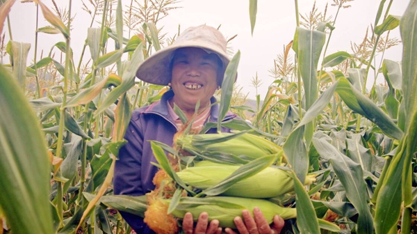 (玉米種植喜獲豐收,農(nóng)戶笑開顏。景谷縣融媒體供圖)