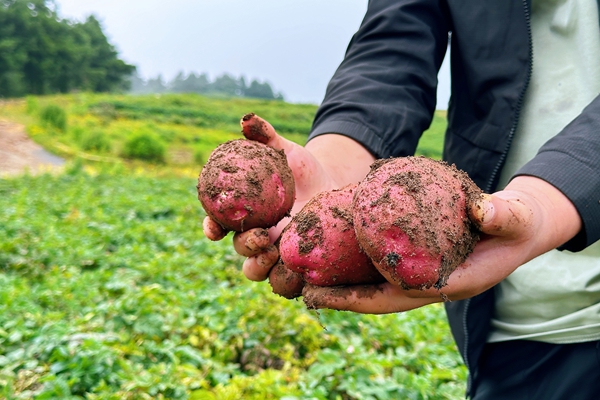盛夏七月,云南省昆明市尋甸回族彝族自治縣金所街道新田社區(qū)的1185畝高原特色(生態(tài)馬鈴薯)種植示范基地豐收在望。