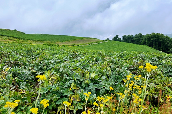 當(dāng)?shù)匾晃环N植戶說:“今年種植的馬鈴薯首次使用一種叫作‘量宇植物之母’的新型肥料,效果很好,馬鈴薯長勢比往年要好。”