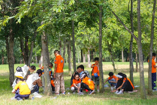 每位孩子手握“濕地觀察記錄卡”,像極了整裝待發(fā)的自然研究員。望遠(yuǎn)鏡對(duì)準(zhǔn)蕩漾的蘆葦,圖譜卡對(duì)照著步道旁的水草、鳥類、昆蟲等生物。通過繪圖、打卡、互動(dòng)講解等方式,在親近自然的過程中提升了觀察力與表達(dá)能力,也深刻理解了生態(tài)保護(hù)的意義。