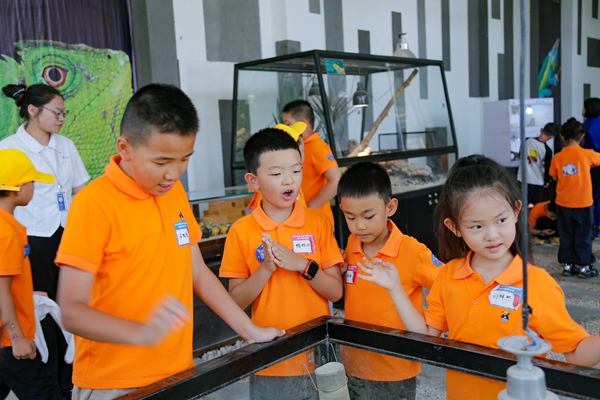 “很多年前,這里曾是一片溫暖的海洋?!睂I(yè)講解員的話語(yǔ)讓小朋友們俯身凝視展柜中栩栩如生的三葉蟲(chóng)化石,那些如盔甲般的甲殼紋路里,封存著寒武紀(jì)海洋的呼吸。沿著“生命演化長(zhǎng)廊”前行,中生代恐龍的骨架復(fù)原模型在燈光下投下震撼陰影——霸王龍的利爪化石與腕龍的頸椎骨標(biāo)本形成時(shí)空對(duì)話,而包裹著昆蟲(chóng)的琥珀則像凝固的黃金,將振翅瞬間定格。通過(guò)真實(shí)化石、動(dòng)態(tài)模型與互動(dòng)問(wèn)答,孩子們?cè)谀X海中搭建起“時(shí)間軸—生物鏈—環(huán)境網(wǎng)”的立體認(rèn)知。