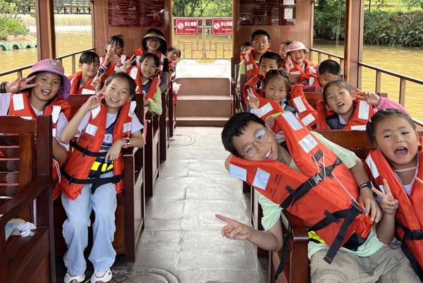 “洞穴科考家”研學活動為警寶們開啟了奇妙的科學之旅。孩子們佩戴專屬徽章莊嚴宣誓,變身為小小地質(zhì)學家。在專業(yè)導師帶領下深入探秘,實地考察溶洞,辨識地下水侵蝕痕跡,觀察地殼運動奧秘,學習喀斯特地貌與鐘乳石形成原理,了解洞穴生態(tài)保護知識。此外,通過親手采集地下河水樣進行水質(zhì)檢測實驗,在實踐中深刻認識水資源的珍貴與環(huán)保意義。為進一步強化文化認知,警寶們還在乘船、乘觀光小火車穿梭溶洞秘境、欣賞壯麗奇觀的同時,聆聽生動的彝族歷史文化講解。