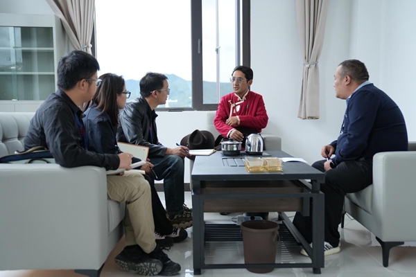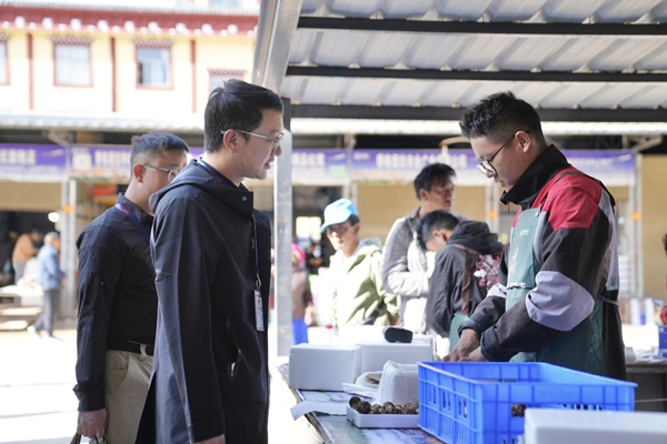 (香格里拉市督察組在吉迪村野生食用菌松茸交易中心向“洛桑村長(zhǎng)”春批了解松茸產(chǎn)業(yè)發(fā)展情況)