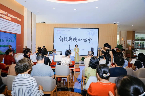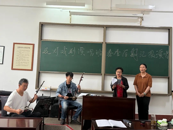 詩詞班學員深情吟誦《詩經(jīng)》名篇,《野有蔓草》的清新、《蒹葭》的悠遠在古琴與笛韻中流轉生輝。原創(chuàng)作品《參加詩韻雅頌吟唱會有感》十聯(lián)詩句道盡詩教傳承韻味,與書法班蒼勁墨跡相映成趣。詩樂交融中,學員們以音律為舟、筆墨為槳,共溯文化長河。