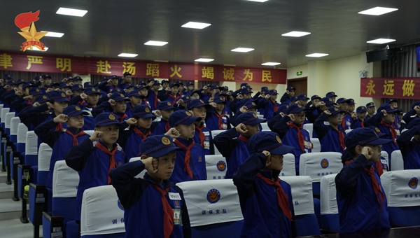 活動(dòng)現(xiàn)場(chǎng)舉行了莊嚴(yán)的授旗和宣誓儀式,在營(yíng)員代表的帶領(lǐng)下,90名“藍(lán)焰少年”高舉右拳宣誓,目光堅(jiān)定,彰顯了云嶺少先隊(duì)員投身實(shí)踐、錘煉品格的信心與決心。