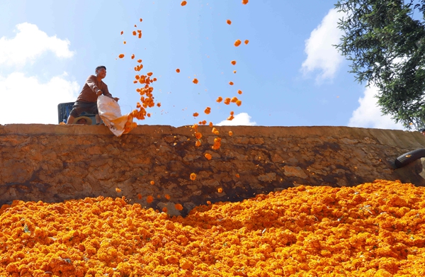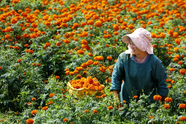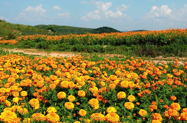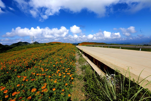近日,云南省文山州丘北縣八道哨鄉(xiāng)2萬多畝萬壽菊迎來盛放期。在大布紅村委會(huì)、黎家莊村委會(huì)沿線的姑租、二道溝、龍嘎等村寨,漫山遍野的萬壽菊層層疊疊、競相綻放,陽光下絢爛多姿的花海,不僅扮靚了鄉(xiāng)村,更成為帶動(dòng)群眾增收的“致富花”。