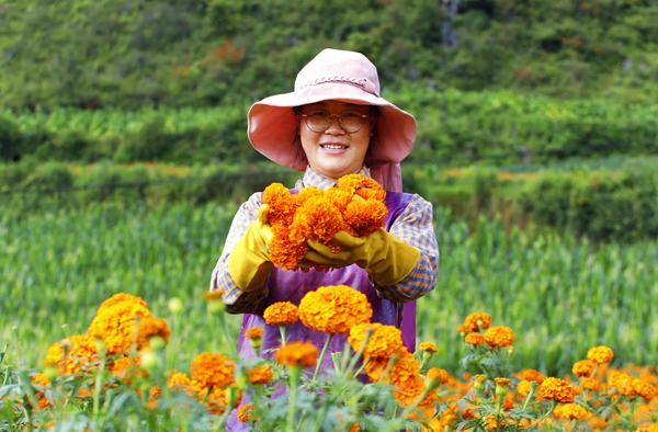 “去年我家31畝萬壽菊,畝產(chǎn)達(dá)2噸,按公司1.2元/公斤的收購價(jià)算,一畝能收入2400元,31畝總增收近7.44萬元。”大布紅下寨村黨支部書記吳紹明笑著說,盛夏采摘季里,豐收的喜悅溢于言表,“這產(chǎn)業(yè)既美了村莊,又鼓了腰包,實(shí)實(shí)在在提升了我們的生活品質(zhì)。”