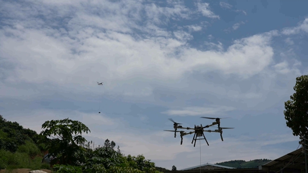 (無人機(jī)吊運(yùn)芒果。羅廷方/攝)