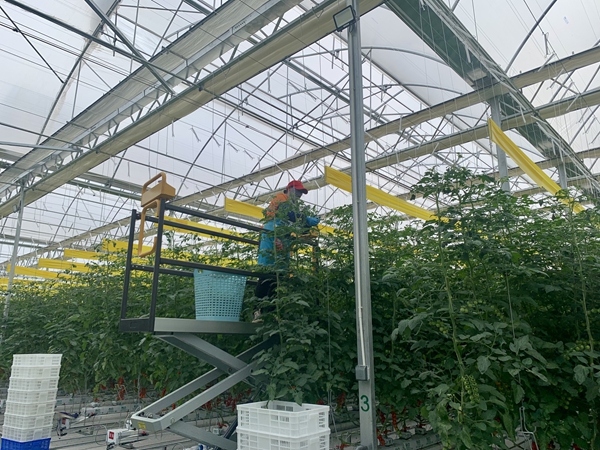 “我負(fù)責(zé)管理的這些大棚,每天的產(chǎn)量都在1.5噸到2噸之間,目前情況比較穩(wěn)定?!睏罱鹂平榻B。