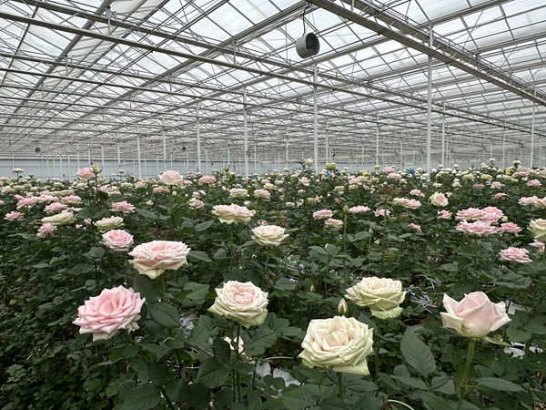 園區(qū)內(nèi),高端玫瑰鮮切花與彩色馬蹄蓮爭(zhēng)奇斗艷。48個(gè)玫瑰品種在34萬平米的溫室中生長,2024年產(chǎn)出3956.15萬枝,花瓣飽滿、色澤艷麗;1萬平米的彩色馬蹄蓮種植區(qū),18個(gè)品種2024年產(chǎn)量達(dá)90.2萬枝,占據(jù)全國90%的市場(chǎng)份額。自2020年8月投產(chǎn)至今,這里已產(chǎn)出近1億枝鮮切花,“麗江的花”品牌聲名遠(yuǎn)揚(yáng),產(chǎn)品暢銷北上廣等一線城市,還漂洋過海銷往日本、越南、俄羅斯等國家。
