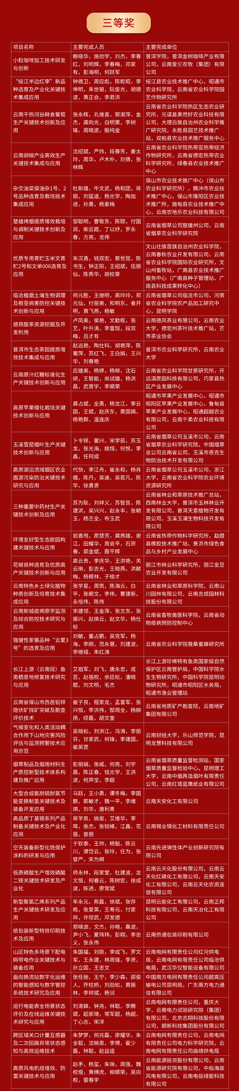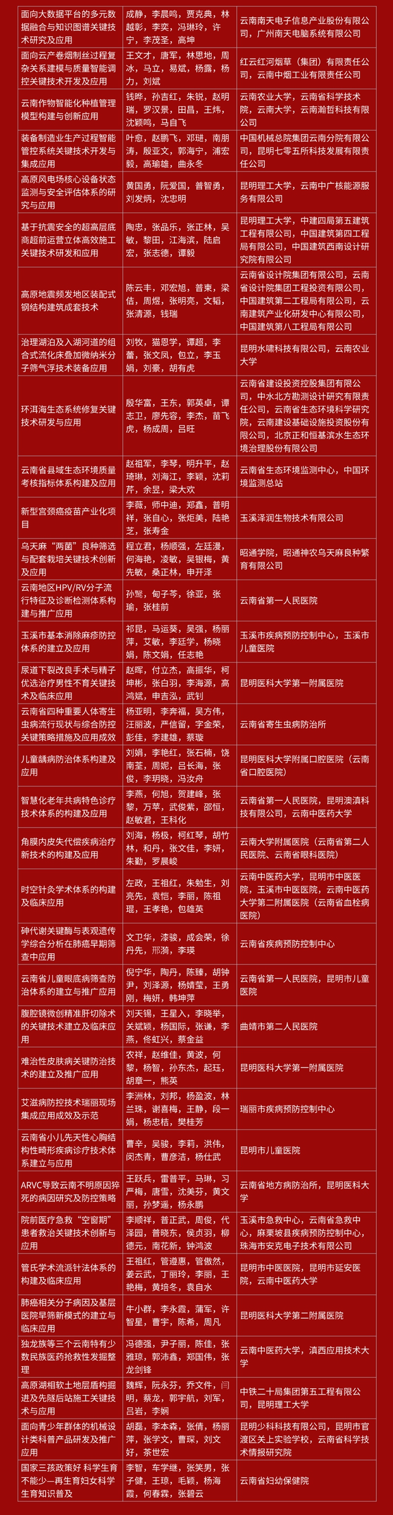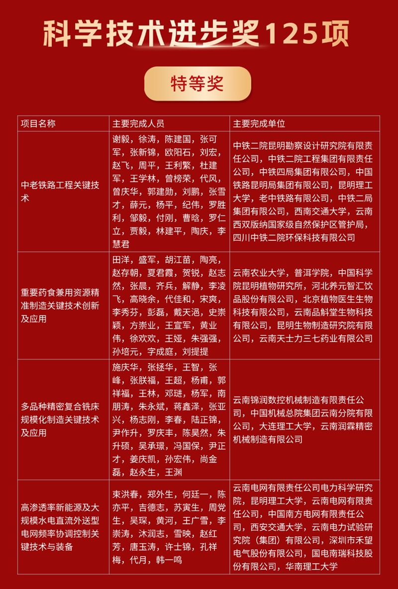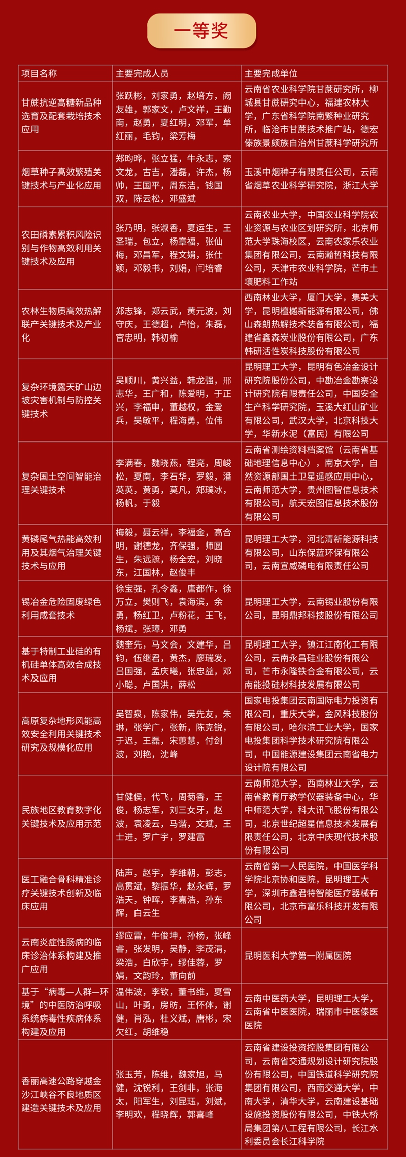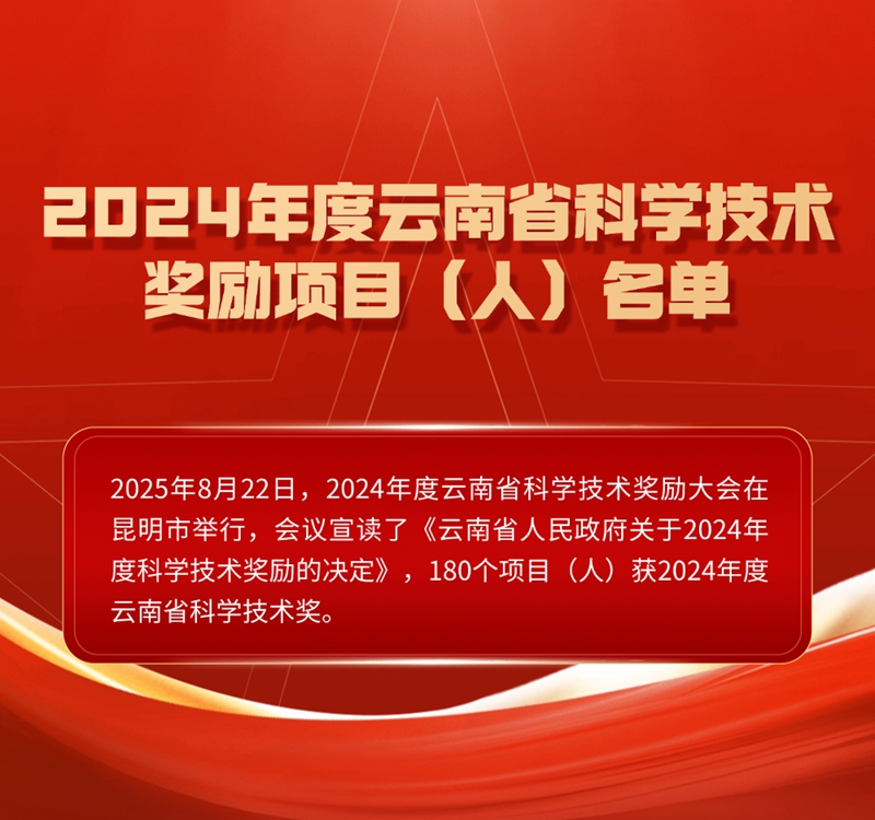 8月22日,2024年度云南省科學(xué)技術(shù)獎(jiǎng)勵(lì)大會(huì)在昆明市舉行,會(huì)議宣讀了《云南省人民政府關(guān)于2024年度科學(xué)技術(shù)獎(jiǎng)勵(lì)的決定》,獲獎(jiǎng)名單如下。