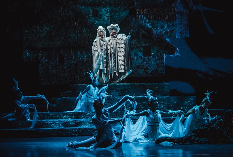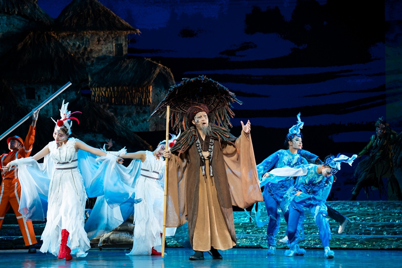 音樂劇《阿者科》以世界文化遺產(chǎn)紅河哈尼梯田為創(chuàng)作背景,通過一千三百年的歷史沉淀,展現(xiàn)了哈尼人守護千年家園的動人故事。劇中,哈尼姑娘阿布的噩夢拉開序幕,水精靈、多依樹、白鷴鳥和蘑菇房等擬人化角色與哈尼梯田共生共存,共同面對家園被拆除的危機。阿布與出走多年的阿哥諾樸在對待傳統(tǒng)與現(xiàn)代發(fā)展上的矛盾,成為推動劇情發(fā)展的關鍵。