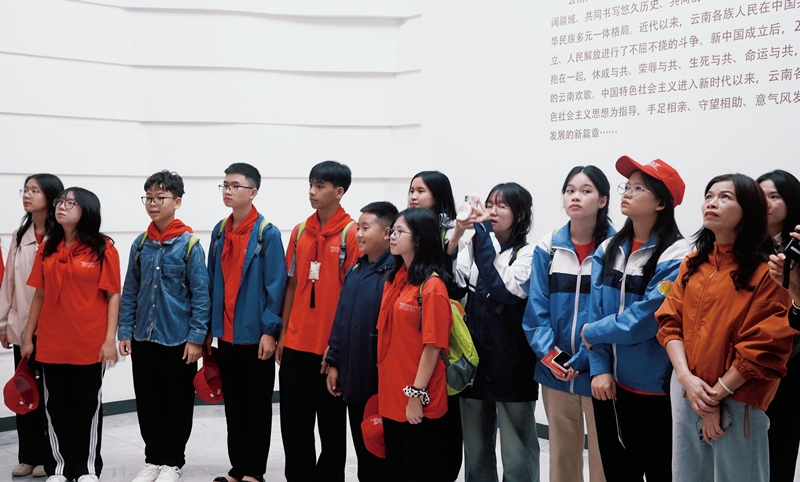 本次研學營由共青團云南省委、云南省少工委主辦,行程橫跨文山、昆明兩地,內(nèi)容豐富多彩。從開營儀式聯(lián)歡互動,到探訪文山博物館感知歷史脈絡;從走進鄭氏黃帝九針醫(yī)術(shù)非遺工坊親手制作中藥香囊、體驗中醫(yī)文化魅力,到城市軌道交通車輛基地體驗輕軌駕駛、共乘船徜徉于丘北濕地公園的生態(tài)畫卷;從走訪昆明胡志明故居追尋革命足跡,到在云南省科技館感受科技之光;從走進亞洲最大花市——斗南花市感受花香與熱情,到深入云南省博物館領(lǐng)略厚重人文;再到昆明樹木園中體驗撿菌子、植物拓印的野趣……理論與實踐交織,歷史與現(xiàn)代碰撞,自然與人文交融,為兩國青少年提供了一場沉浸式的交流體驗。