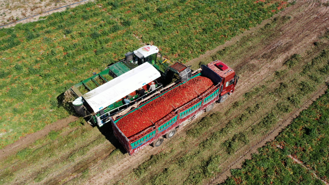 呼圖壁縣:加工番茄紅似火,機(jī)械化采收效率高