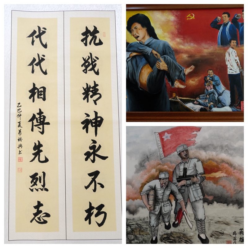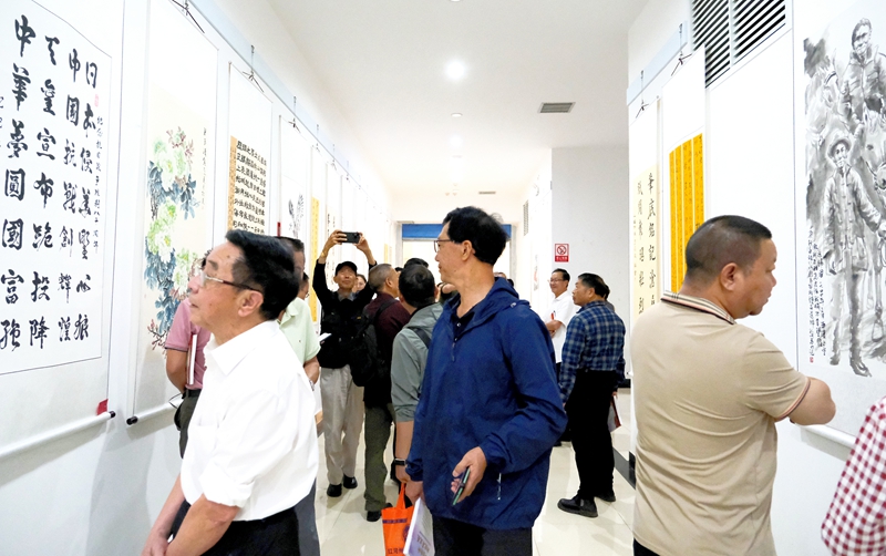 參展作品主題鮮明,題材多元,既有展現(xiàn)生態(tài)文明建設(shè)碩果的綠水青山圖,更有定格城鄉(xiāng)區(qū)域融合發(fā)展的溫馨瞬間。作品形式創(chuàng)新,技藝精湛,涵蓋書法、國畫、油畫、詩詞楹聯(lián)等多種形式,再現(xiàn)了烽火連天的歷史場景,以血火淬煉的藝術(shù)語言警示后人:銘記“落后就要挨打”的深刻教訓(xùn),引發(fā)觀眾強(qiáng)烈共鳴。