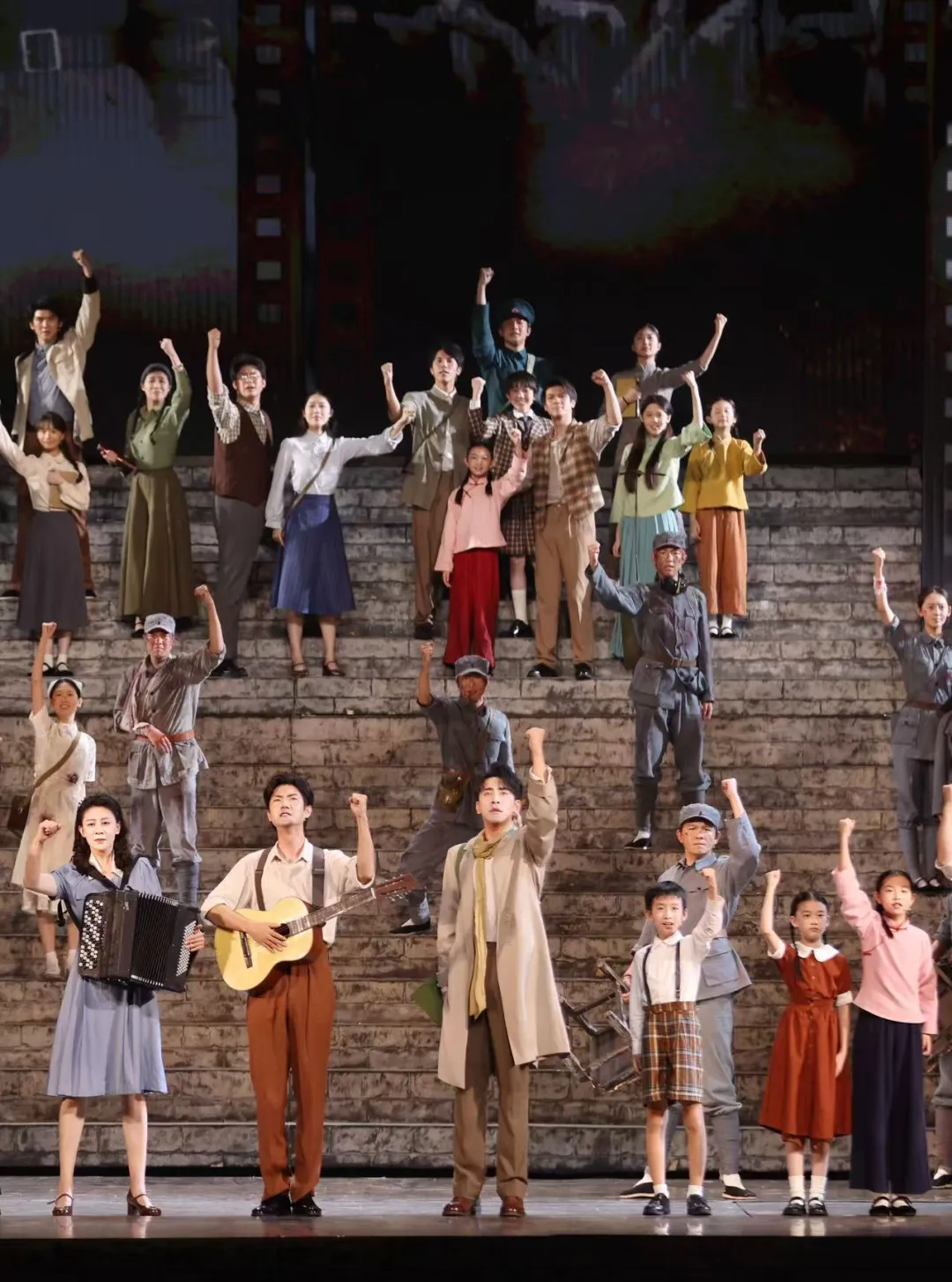 舞臺上,他扮演的“青年畫家”,雖無人物原型,卻像一塊鮮活的“歷史拼圖”,拼湊出當(dāng)年無數(shù)在戰(zhàn)火中堅守的文藝工作者群像。“那時的文藝戰(zhàn)士,從不是孤軍奮戰(zhàn):可能是在破廟里就著油燈畫抗戰(zhàn)宣傳畫的學(xué)生,可能是在戰(zhàn)壕里用炭條記錄戰(zhàn)士沖鋒身影的文藝兵,他們以紙筆為‘武器’,以作品為‘火把’,哪怕餓著肚子,也要為同胞燃亮希望?!?/p>