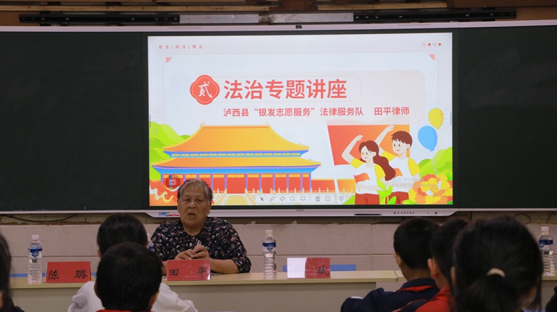 普法宣傳,為營(yíng)造安全的校園環(huán)境注入新動(dòng)力。瀘西縣銀發(fā)志愿法律服務(wù)隊(duì)隊(duì)長(zhǎng)田平帶領(lǐng)隊(duì)員深入全縣中小學(xué)、幼兒園開展法治講座,根據(jù)學(xué)生、教師、家長(zhǎng)三類群體的實(shí)際,通過(guò)真實(shí)案例、播放警示教育片、法律知識(shí)講解等方式,有針對(duì)性地講解防校園欺凌、早婚早育危害、交通安全等法律法規(guī)和自我防范知識(shí),講解《中華人民共和國(guó)家庭教育促進(jìn)法》《中華人民共和國(guó)民法典》等法律法規(guī)累計(jì)50余場(chǎng)次。法治講座為營(yíng)造安全的校園環(huán)境注入了新動(dòng)力,既強(qiáng)化了三類群體的法治觀念,又增強(qiáng)了社會(huì)、家庭、學(xué)校聯(lián)動(dòng)教育的力度。