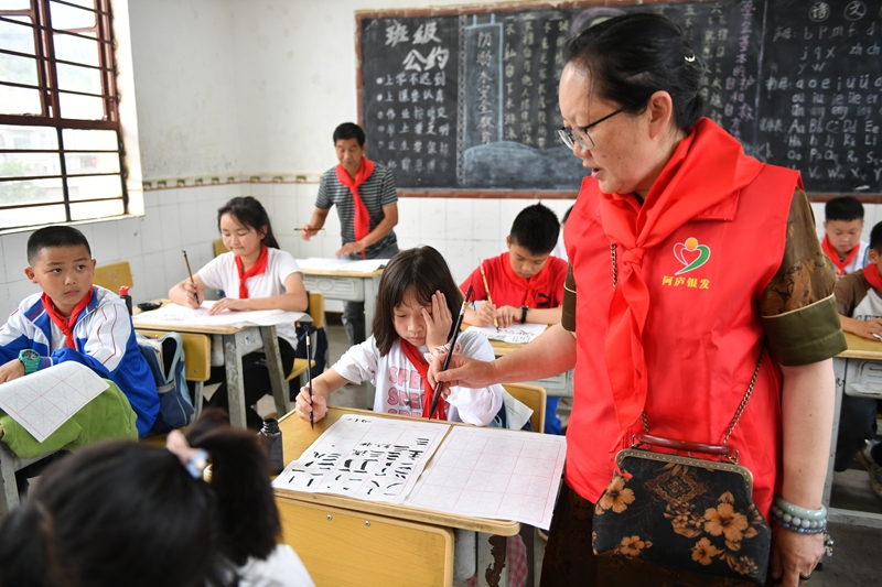 近年來(lái),云南省紅河州瀘西縣銀發(fā)志愿者紛紛走進(jìn)校園,發(fā)揮特長(zhǎng)優(yōu)勢(shì),以多種方式開展“大手牽小手”關(guān)愛少年兒童志愿服務(wù)活動(dòng),為呵護(hù)少年兒童健康成長(zhǎng)貢獻(xiàn)銀發(fā)力量。