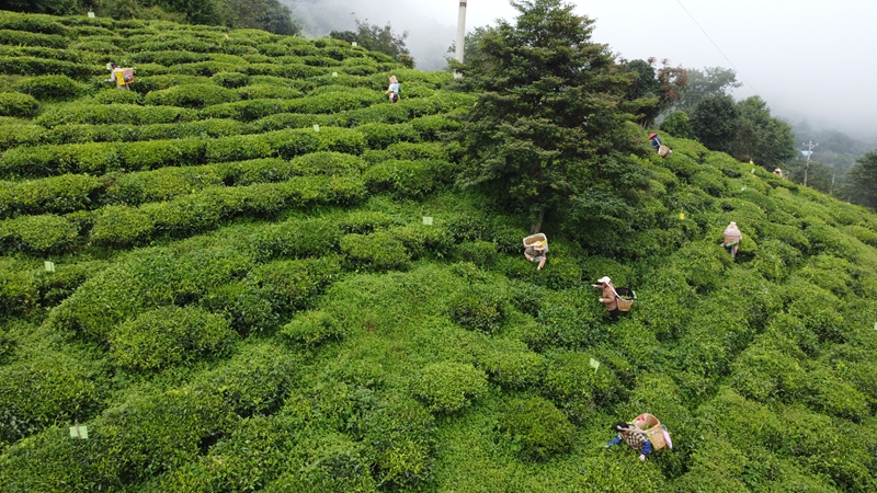 在雙柏縣法脿鎮(zhèn)白竹山8000多畝的茶園里,連綿起伏的茶樹蔥蔥郁郁,茶香沁人心脾。茶農(nóng)們身背茶簍采茶,雙手在茶芽間嫻熟舞動(dòng)。今秋的秋茶飽含雨露滋養(yǎng),為保證茶葉品質(zhì),茶園每天吸納附近40多名茶農(nóng)到茶園采茶,按采收量計(jì)重、自選時(shí)段的方式給付薪酬,讓茶農(nóng)掙錢、養(yǎng)家兩相兼顧?!拔壹揖驮诓枭较旅妫綍r(shí)就在家里面忙忙,到采茶季節(jié)就來這里采茶,這里上班時(shí)間自由,一方面增加收入,一方面又可以照顧到家里,我覺得這樣挺好的?!辈柁r(nóng)黃女士邊采茶邊說。