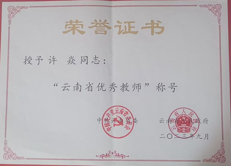 “教育是用生命影響生命的事業(yè),唯有堅守與熱愛,方能不負使命?!边@是2024年“興滇英才支持計劃——教育人才”榮譽獲得者、云南省優(yōu)秀教師許焱的教育箴言。自1999年8月踏上講臺,這位1977年6月出生的中共黨員,已在楚雄彝鄉(xiāng)的教育沃土上深耕26載,以愛為犁、以責為種,在教師崗位上書寫了一曲育人贊歌。