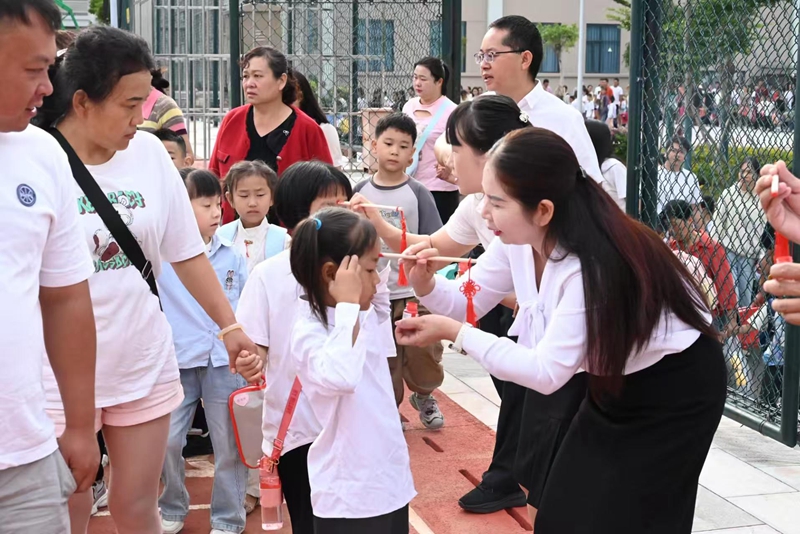 源達小學為一年級新生舉辦了一場古韻盎然的入學儀式。孩子們在家長陪伴下跨過“啟智門”,參與朱砂點痣、正衣冠、行鞠躬禮等傳統(tǒng)環(huán)節(jié),在“開筆禮”中奠定“知禮明理、讀書明志”的成長基石。擊鼓鳴志、童言宣誓等環(huán)節(jié),更讓萌娃們對小學生活充滿期待,初步樹立感恩父母、尊師重道的價值觀。