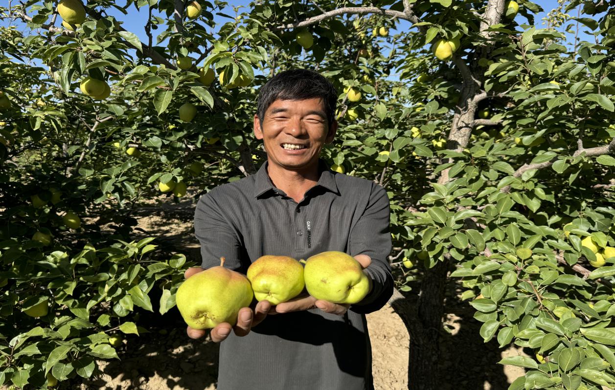 香梨園負(fù)責(zé)人杭強(qiáng)臉上洋溢著豐收喜悅。王夢君攝
