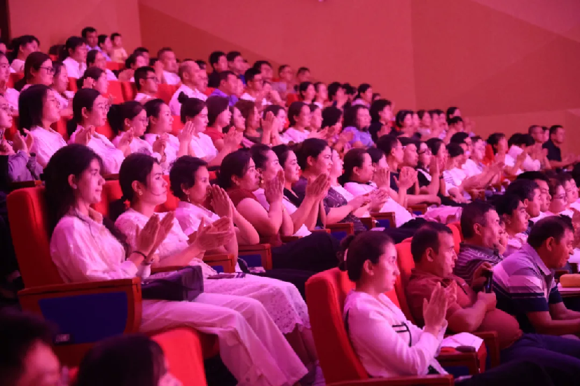 演出最后,全體演員與觀眾齊聲高歌《沒有共產(chǎn)黨就沒有新中國》,激昂的旋律為這場精彩紛呈的文化盛宴畫上圓滿句號。歌聲與掌聲久久回蕩,充分彰顯了民族團結的深厚情誼和文化共享的喜悅氛圍,也將整場活動的熱烈氣氛再次推向高潮。