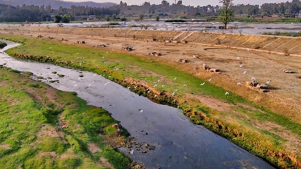 (元謀縣龍川江中白鷺飛舞。元謀縣融媒體中心供圖)