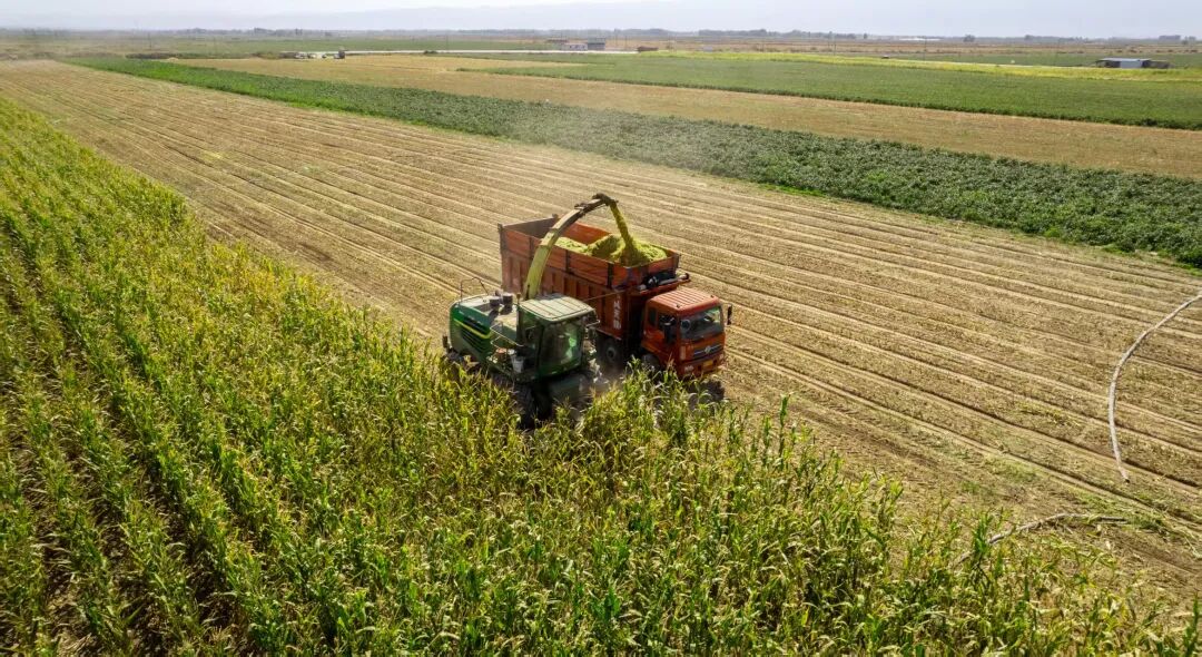 為了搶抓青貯飼料儲備關(guān)鍵期,大河沿子鎮(zhèn)積極協(xié)調(diào)機(jī)械、人力,全力推進(jìn)青貯原料收獲工作,為牲畜越冬備足“口糧”。大河沿子鎮(zhèn)農(nóng)業(yè)發(fā)展中心干部阿力波勒森說:“我們搶抓晴好天氣搶收,共投入3臺收獲機(jī)、10輛運(yùn)輸車,預(yù)計(jì)9月中旬完成全部收割任務(wù)?!?/p>